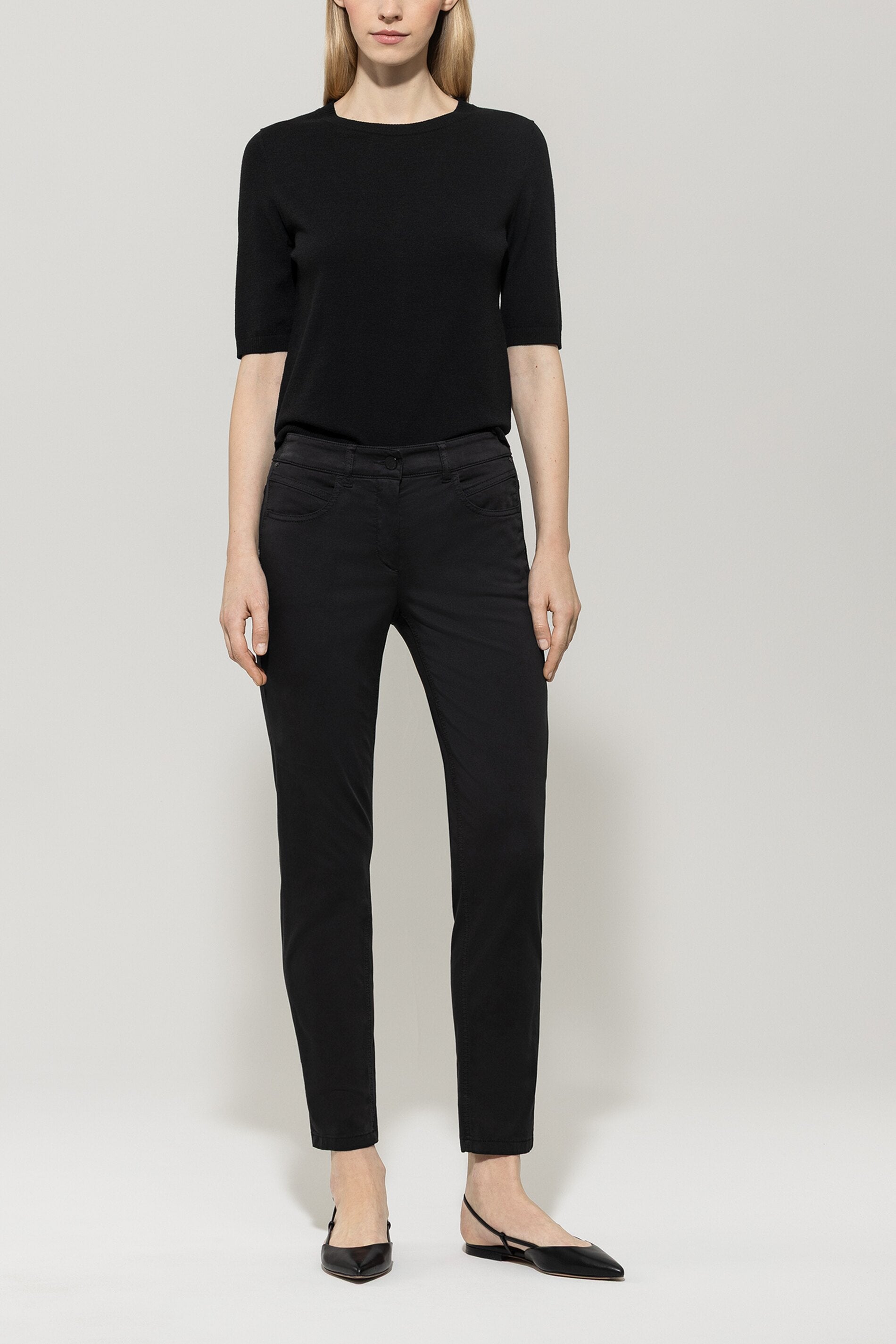Fließendes Kurzarm-Blusenshirt - black - Standard | Model Front